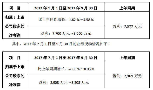 ICCSZ訊 太辰光于10月13日發(fā)布《2017 年前三季度業(yè)績(jī)預(yù)告》,據(jù)公告顯示: 2017 年 1 月 1 日至 2017 年 9 月 30 日,歸屬于上市公司股東的凈利潤(rùn)比上年同期增長(zhǎng)1.62 %~5.58 %,盈利7,700 萬(wàn)元~8,000萬(wàn)元,上年同期盈利7,577 萬(wàn)元。