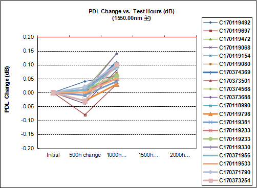 圖 4 TC測(cè)試PDL變化值(Temperature cycle(-40℃~+85℃) ,800 cycles qualification)