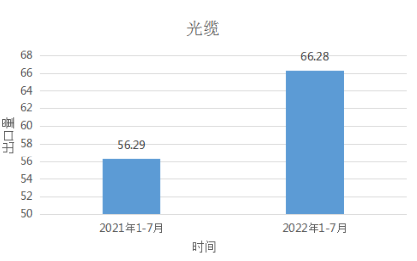 除此之外,海外市場(chǎng)不斷增加的光纜需求,也是導(dǎo)致我國(guó)光纜產(chǎn)量位居歷史高位的重要因素——具體表現(xiàn)在我國(guó)1-7月光纜出口量的持續(xù)增長(zhǎng)。數(shù)據(jù)顯示,1-7月我國(guó)光纜(海關(guān)編碼:85447000)出口量達(dá)66.28億米,去年同期為56.29億米,同比增長(zhǎng)17.7%。由此可見(jiàn),海外市場(chǎng)對(duì)我國(guó)光纜的需求上漲。