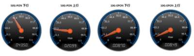 在50G-PON的同一個PON口下,項目組進行了50G-PON和10G-EPON Combo業(yè)務測試。50G-PON業(yè)務和10G-EPON業(yè)務同時進行,50G-PON業(yè)務測速可達43.5Gbps/21Gbps(下行/上行),10G-EPON業(yè)務測速可達8.7Gbps/8.5Gbps(下行/上行),兩個通道業(yè)務互不影響,測速結果均達到了預期效果。此次Combo業(yè)務測試為業(yè)界首次,證明了50G-PON前向兼容10G-EPON的多代際同ODN共存能力,可以有效保護現(xiàn)有ODN投資,對于湖北電信現(xiàn)網(wǎng)10G-EPON平滑升級到50G-PON提供了有利支撐。