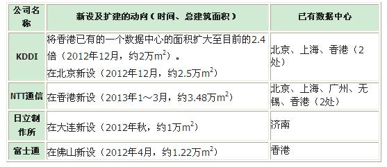 表:日系IT企業(yè)在中國大陸和香港新設及擴建的大規(guī)模數(shù)據(jù)中心