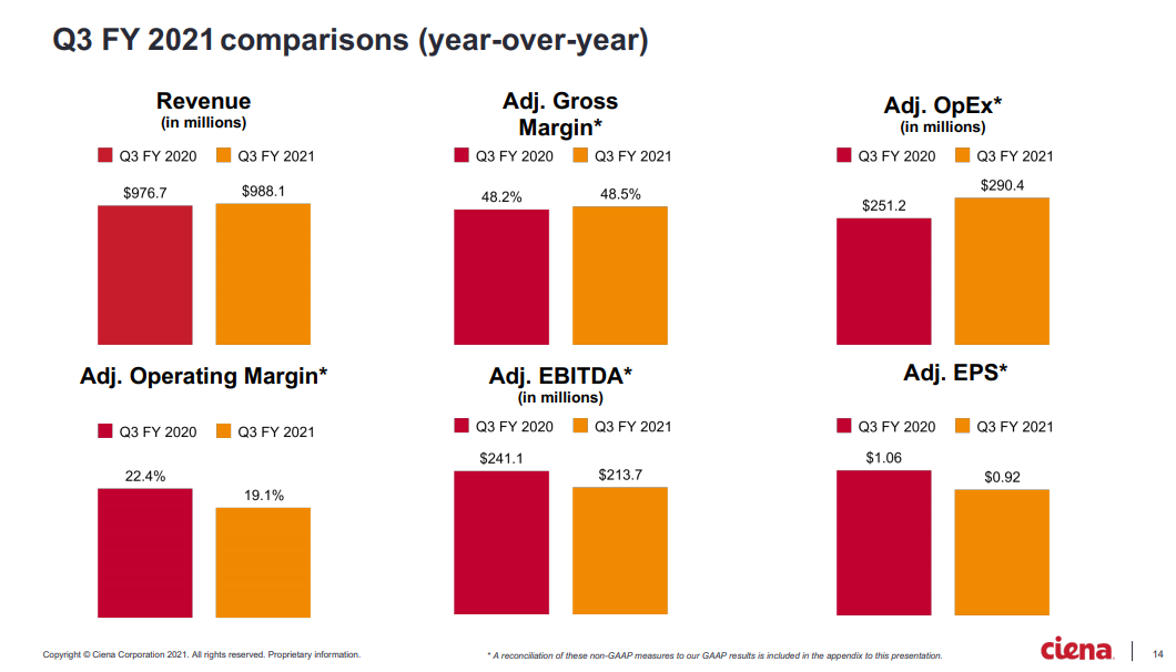 ICC訊(編譯:Vicki)網(wǎng)絡(luò)系統(tǒng),服務(wù)和軟件公司Ciena宣布了其截至2021年7月31日的第三財季的財務(wù)業(yè)績。