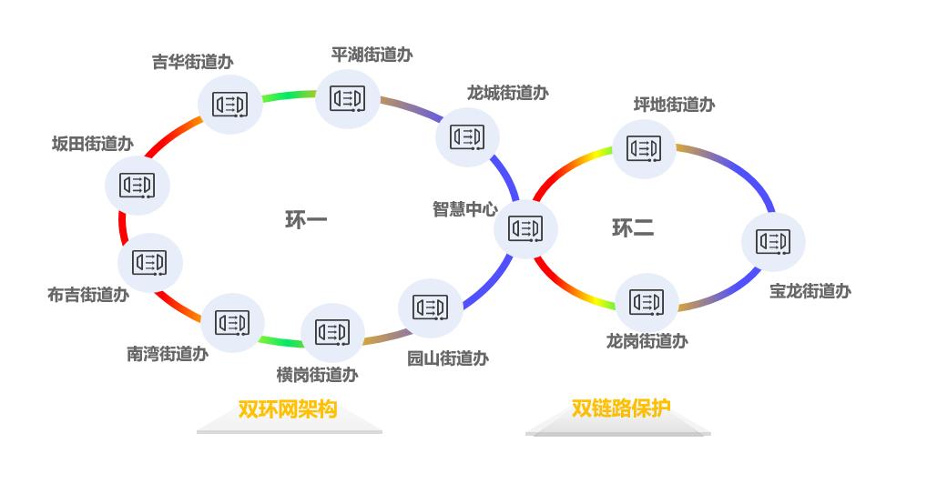 龍崗區(qū)OTN雙環(huán)網(wǎng)架構(gòu)圖