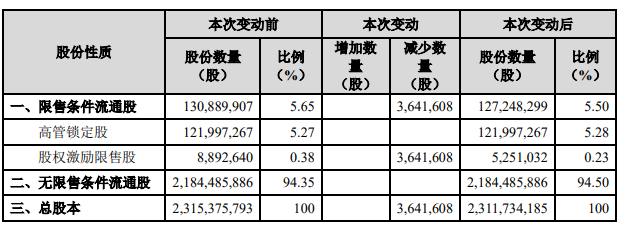 共計回購注銷已授予但尚未解除限售的限制性股票364.16萬股,占公司總股本23.15億股的比例為0.1573%。本次回購注銷共涉及1,987人。此舉為了回應(yīng)部分員工因離職等原因失去了激勵對象資格。用于回購注銷限制性股票的資金總額為9570.15萬元,資金來源為公司自有資金?;刭徸N完成后,公司股份總數(shù)由23.15億股變更為23.12億股。