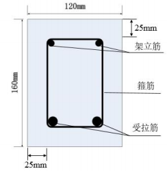 尺寸與強(qiáng)度:制作混凝土簡(jiǎn)支梁試件,截面尺寸為120mm×160mm,梁長(zhǎng)1800mm,設(shè)計(jì)強(qiáng)度等級(jí)為C30,采用P.O42.5級(jí)普通硅酸鹽水泥,鋼筋籠采用HRB335級(jí)螺紋鋼筋。