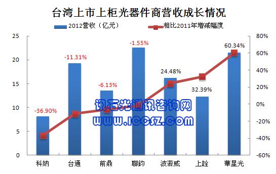 從2011年到2012年間,臺灣上市上柜的光通訊公司不少,比如VCESEL及PIN二極管廠商光環(huán)科技在2011年3月24日上柜、美國波長選擇開關(WSS)廠商科納在2011年8月31日上市、光纜及FTTH相關配件廠商臺通光電在2011年9月19日上市、激光二極管和TO-CAN廠商華星光在2011年12月12日上柜,以及光無源器件廠商波若威在2012年12月3日上柜。