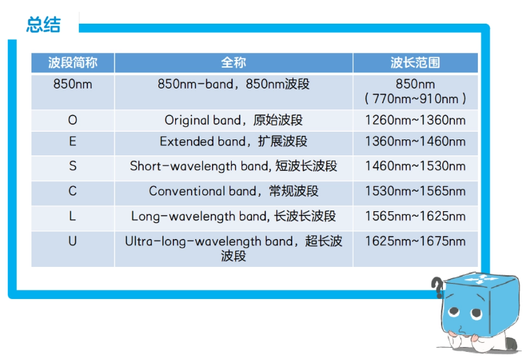 1260nm~1625nm 區(qū)域又被細(xì)分為五個(gè)波段:O 波段、E 波段、S 波段、C 波段和 L 波段。