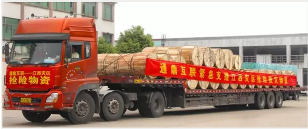 6月30日,滿載著通鼎全體員工對(duì)湖南等災(zāi)區(qū)人民關(guān)愛(ài)的800余公里光纜就已檢測(cè)合格裝車,分5個(gè)批次加急運(yùn)往南昌、岳陽(yáng)、吉首、邵陽(yáng)等5處災(zāi)區(qū)。當(dāng)晚,公司又接到上饒等地的救災(zāi)物資緊急訂單,廣大一線員工將對(duì)災(zāi)區(qū)人民的關(guān)愛(ài)傾注到光纜產(chǎn)品的生產(chǎn)中,公司技術(shù)人員也自動(dòng)到車間幫忙,嚴(yán)格把控產(chǎn)品質(zhì)量。