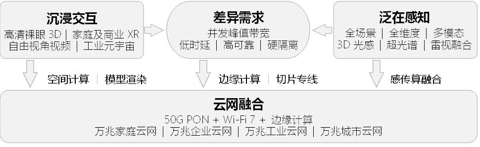 進入全光萬兆時代,用戶將可以在家中體驗到裸眼3D顯示、自由視角觀影及直播、極速云存儲(NAS)和極速云游戲等數字服務。企業(yè)通過50G PON可以實現Wi-Fi 7回傳,滿足如混合現實(MR)等新型終端并發(fā)使用和無障礙在線協(xié)作,隨時調用云端渲染等邊緣算力服務,提升使用體驗。全光萬兆還可以增強城市數字基礎設施,發(fā)揮綜合承載能力,提供高可靠的專網服務,支持城市智慧綜合桿的建設。