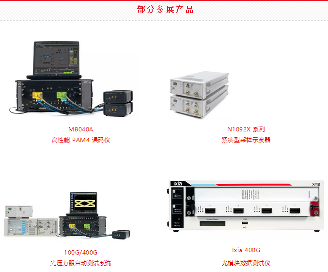 是德科技作為領(lǐng)先的測(cè)試測(cè)量設(shè)備廠商,也攜最新產(chǎn)品與方案驚艷亮相。具體包括其最新的關(guān)于在數(shù)據(jù)中心應(yīng)用 400G PAM4,相干測(cè)試,光接收機(jī)壓力眼測(cè)試及 PAM4 仿真和 PLTS 等測(cè)試解決方案,以下是演示方案的完整列表: