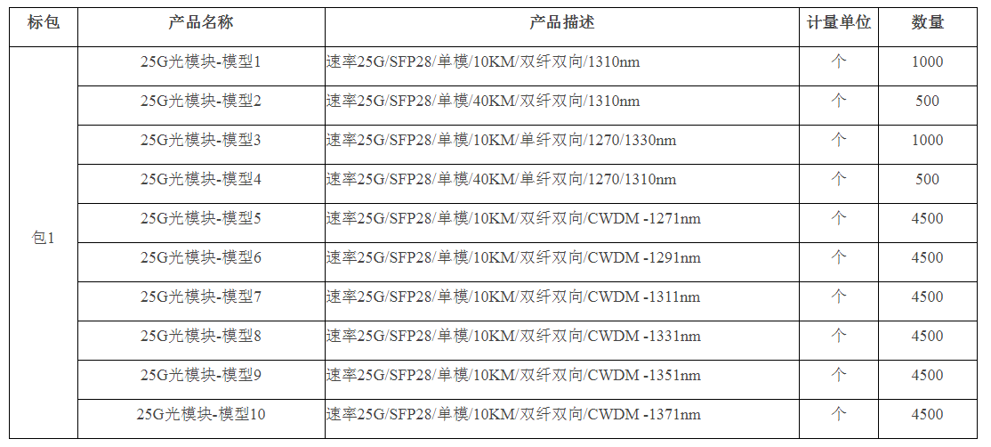 據(jù)了解,該項目擬采購25G光模塊總數(shù)量約30000塊,最高總預(yù)算6780萬元(含稅),高于該限價的將否決投標。中標人數(shù)量為4個,具體中標份額對應(yīng)為:30%、27.5%、22.5%、20%。