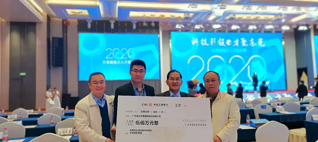 瑞谷光網(wǎng)自2018年開始與華南理工大學(xué)建立產(chǎn)學(xué)研合作,其中“高速光通信芯片智能封測裝備創(chuàng)新團(tuán)隊”獲得東莞市科技局正式立項。12月9日上午,瑞谷光網(wǎng)創(chuàng)新科研團(tuán)隊負(fù)責(zé)人胡躍明教授作為代表在本次高層次人才活動周上接受東莞市委副書記、市長肖亞非頒發(fā)項目立項資助支票500萬元。團(tuán)隊核心成員劉海明博士、袁鵬博士與項目負(fù)責(zé)人肖華平等一同出席見證。