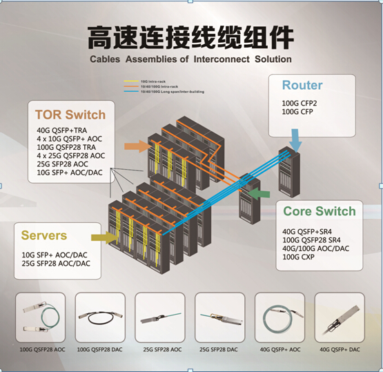 高速、高密度連接解決方案,應(yīng)用于數(shù)據(jù)中心、Core Switch、TOR Switch、Router、Servers、