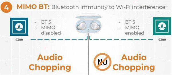 藍(lán)牙規(guī)格依然是藍(lán)牙 5.0,但新增 MIMO 多入多出技術(shù)可減少一半的配對時間,而且同時連接 Wi-Fi 時不再出現(xiàn)音頻斷斷續(xù)續(xù)的問題。