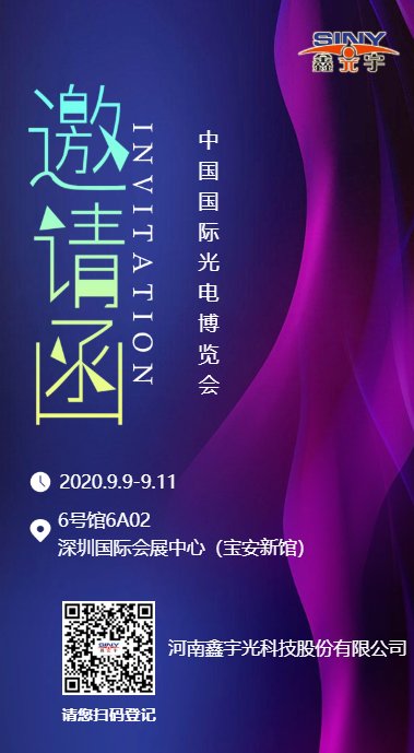 ICC訊 中國國際光電博覽會(CIOE)在國內(nèi)是極具規(guī)模及影響力的光電產(chǎn)業(yè)綜合性展會,作為覆蓋光電全產(chǎn)業(yè)鏈的專業(yè)展會,中國光博會已成為眾多企業(yè)展示新技術(shù)及新產(chǎn)品、了解市場先機(jī)的商貿(mào)、技術(shù)及學(xué)術(shù)交流的專業(yè)平臺。專業(yè)的光器件一站式解決方案供應(yīng)商河南鑫宇光科技股份有限公司將出席2020年9月9日-11日第22屆中國國際光電博覽會。屆時將隆重展出:隔離器、適配器,適配隔離器、OSA類、TO類、陶瓷磁性產(chǎn)品等 誠摯邀請您光臨我司展臺交流指導(dǎo)。