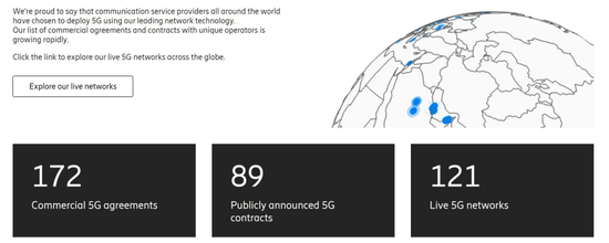 ICC訊 愛立信官網(wǎng)公布了其最新數(shù)據(jù):截止到目前,愛立信已經(jīng)在全球范圍內(nèi)獲得172個5G商用合同,其中,愛立信已經(jīng)和89家運營商達成允許公示的5G商用合同,共在54個國家為121個正在運行的5G商用網(wǎng)絡(luò)提供設(shè)備支持。