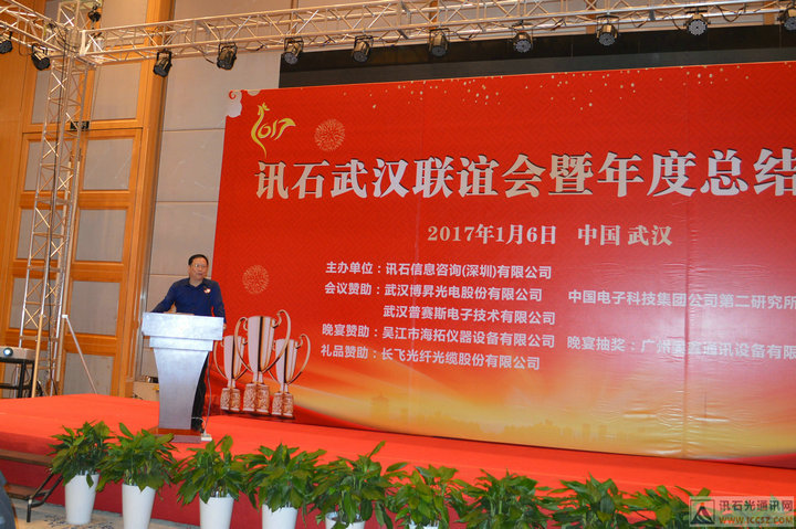 石總致辭:感謝大家準(zhǔn)時(shí)來參會(huì)!武漢外面寒冷,但是會(huì)場(chǎng)內(nèi)的熱情讓我們感到暖洋洋!2016年已經(jīng)離去,2017我們繼續(xù)相伴前行!回望過去,政治上也是大波動(dòng):英國脫歐、美國大選、中國十三五規(guī)劃……經(jīng)濟(jì)上,石油、金價(jià)……總之,我們還是有能抓住機(jī)會(huì)發(fā)展!而光通信行業(yè)大事也波瀾不息,都讓光通訊同仁們時(shí)刻保持備戰(zhàn)姿態(tài),在新的一年里,祝愿大家都能乘風(fēng)破浪化挑戰(zhàn)為機(jī)遇,再攀高峰!今天會(huì)議的一大亮點(diǎn)就是英雄榜揭曉典禮,接下來的演講、論壇精彩紛呈,敬請(qǐng)期待!最后也特別感謝武漢博昇光電、中電科技第二研究所、普賽斯電子技術(shù)、吳江海拓儀器、武漢長飛對(duì)本次訊石年終答謝會(huì)的大力支持!未來不管風(fēng)吹浪打,我們勝似閑庭信步。再次祝愿新的一年,光通訊行業(yè)繼續(xù)奮發(fā)向上,在場(chǎng)嘉賓的企業(yè)都能激流勇進(jìn)!昨天剛過臘八,在這里給大家拜個(gè)早年!也祝愿今天的會(huì)議圓滿舉辦!