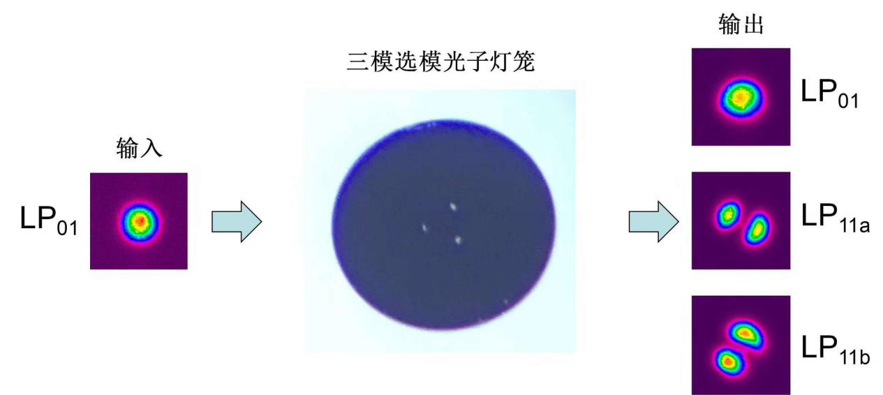 圖4三模選模光子燈籠顯微端面與輸入輸出示意圖