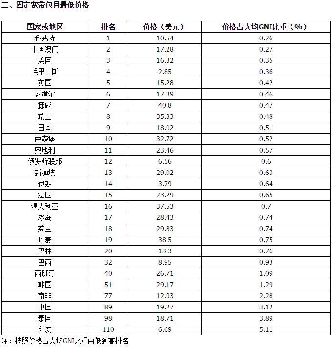 ICCSZ訊 2016年11月22日,國際電信聯(lián)盟(ITU)發(fā)布了《Measure the Information Society Report 2016》(以下簡稱“衡量信息社會”),其中對全球各個國家和地區(qū)上一年度ICT服務價格(電信業(yè)務資費)進行調查,形成IPB指數(shù)。報告顯示,我國各項電信資費水平處于全球中低水平陣營。寬帶發(fā)展聯(lián)盟摘錄了相關排名情況,并邀請中國信息通信研究院政策與經濟研究所馬源副所長做了解讀:
