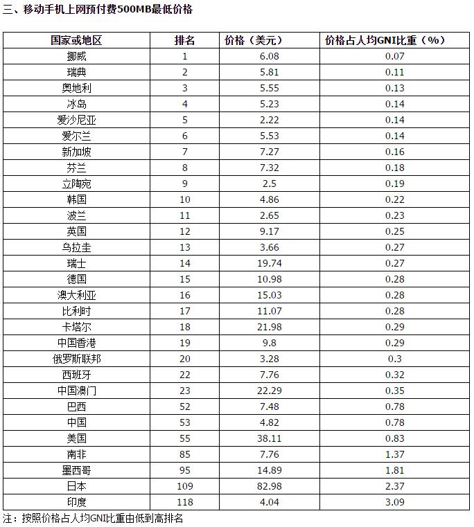 從排名情況看,我國整體資費水平處于全球中低水平陣營,IPB指數(shù)基本反映了我國情況,與我國經濟發(fā)展水平基本相適應,適度超前。從數(shù)據(jù)準確性來看,客觀來講,由于國際電聯(lián)制定IPB指數(shù)需要統(tǒng)籌兼顧發(fā)達國家和發(fā)展中國家之間不同的社會和經濟發(fā)展水平,綜合考慮各方面因素,因此具有一定局限性,在一定程度上高估了我國用戶ICT服務真實負擔程度。具體來說,ITU在采集各國ICT服務價格數(shù)據(jù)時,選取的代表性城市是各國人口規(guī)模最大的城市或首都,在我國選的是首都北京。與發(fā)達國家或者國土面積比較小的國家國內各個城市經濟發(fā)展差距不大的情況不同,我國幅員遼闊,人口眾多,區(qū)域之間、城鄉(xiāng)之間發(fā)展水平差距很大,北京的人均GNI和ICT服務價格都明顯高于全國平均水平。