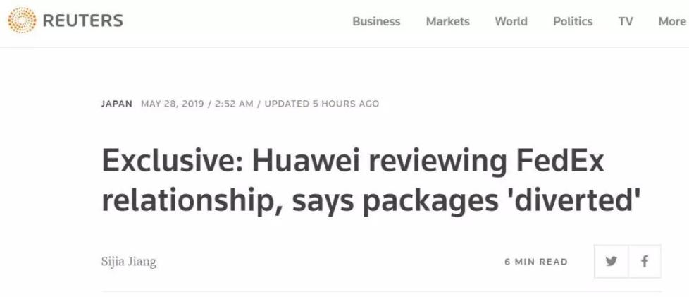 華為發(fā)言人喬·凱利(Joe Kelly)對路透社表示:“最近的一些經(jīng)歷表明,通過聯(lián)邦快遞(FedEx)發(fā)送的重要商業(yè)文件沒有送達(dá)目的地,而是被轉(zhuǎn)移到美國的聯(lián)邦快遞,或者被要求轉(zhuǎn)移到聯(lián)邦快遞,這削弱了我們的信心?!? 他還表示,由于這些事件的直接后果,將必須重新審視與聯(lián)邦快遞的合作關(guān)系。