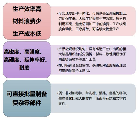 注成科技的鎢銅合金采用模具直接成型,采用金屬粉末注射成型工藝,尺寸精度等于粉末冶金的精度(±0.03mm),降低(甚至沒有)機(jī)械加工量,高于±0.03mm精度由機(jī)加完成,材料性能不低于熔滲法制造的材料。與傳統(tǒng)工藝比較注塑成型較大降低生產(chǎn)成本,效率高,產(chǎn)品結(jié)構(gòu)穩(wěn)定等優(yōu)勢。