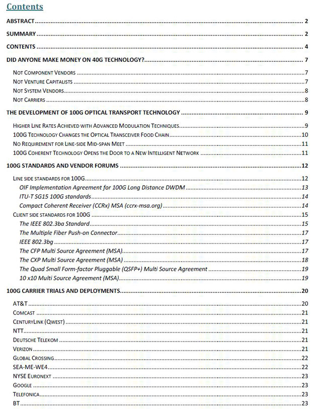 該報(bào)告還分析了數(shù)據(jù)中心的40G和100G以太網(wǎng)的市場(chǎng)機(jī)會(huì)。報(bào)告提供Lightcounting對(duì)于客戶端和線路端40/100G技術(shù)以及當(dāng)前市場(chǎng)價(jià)格的評(píng)估。最后,它提出了正在進(jìn)行研究的超越100G的光傳輸技術(shù)的可能性分析。