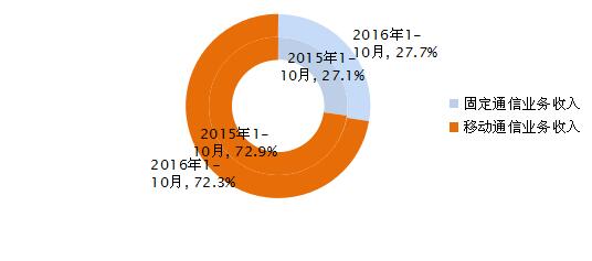 圖9 2016年1-10月電信業(yè)務(wù)收入結(jié)構(gòu)占比情況(固定和移動(dòng))