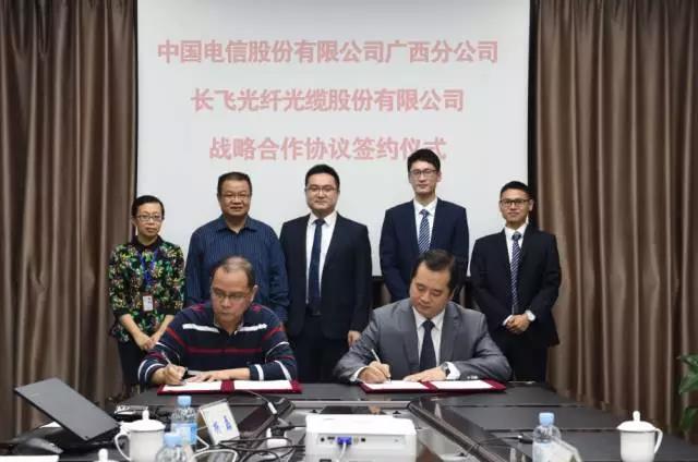 ICCSZ訊 2017年10月26日,長飛光纖光纜股份有限公司(以下簡(jiǎn)稱“長飛公司”,股票代碼:6869.HK)與中國電信集團(tuán)股份有限公司廣西分公司(以下簡(jiǎn)稱“中國電信廣西分公司”)成功簽署了戰(zhàn)略合作協(xié)議。中國電信廣西分公司副總經(jīng)理葉松華,采購部總經(jīng)理李強(qiáng),采購部副總經(jīng)理黃敏,采購部余忠澤、楊磊,長飛公司國內(nèi)公網(wǎng)總部經(jīng)理周宏慷,華南大區(qū)銷售總監(jiān)王翔,華南大區(qū)董小雷、盧來利出席了簽約儀式。