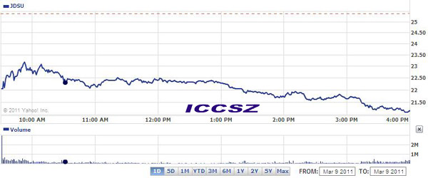 JDSU公司3月9日股票走勢(截至11點10分左右) 實時行情