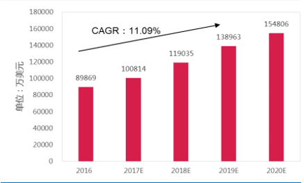 我國整體網(wǎng)絡(luò)提速擴(kuò)容的需求迫切,未來兩年對網(wǎng)絡(luò)建設(shè)和升級的投資力度不減,波分下沉、波分下鄉(xiāng)等情況都將促迚AWG、 VMUX等DWDM產(chǎn)品的旺盛欲求。2016年全球DWDM產(chǎn)品市場達(dá)89868.98萬美元,且未來將保持11.09%的年復(fù)合增速,到2020年規(guī)模預(yù)計將達(dá)154806.04萬美元。