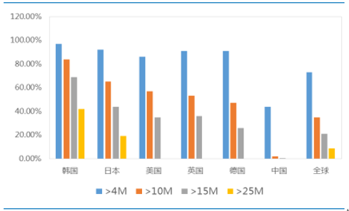 2016年Q1各國不同網(wǎng)速用戶構(gòu)成情況