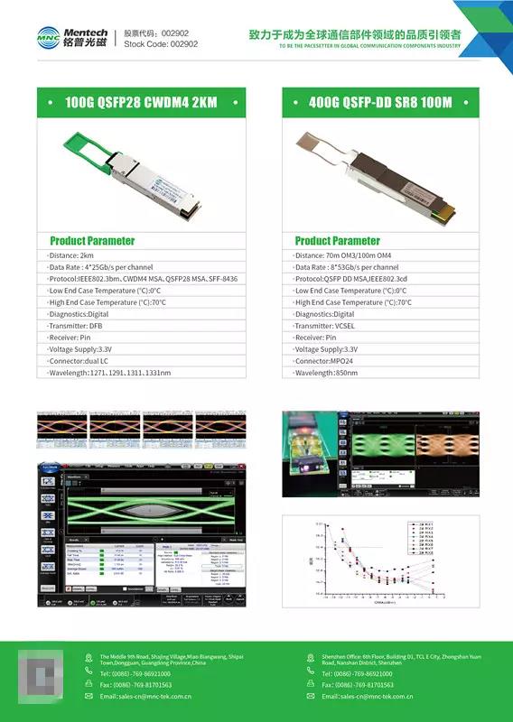 During the exhibition, we will display our key optical products, including PON components, PON modules, SFP、XFP and SFP+SR/LR/ER/ZR, and the latest product releases, such as 100G CWDM4/PSM4/400G QSFP-DD-SR8,25G SFP28,100G QSFP28 SR/LR4 and AOC. Hereby we would like to invite you to pay a visit at the Mentech exhibition.