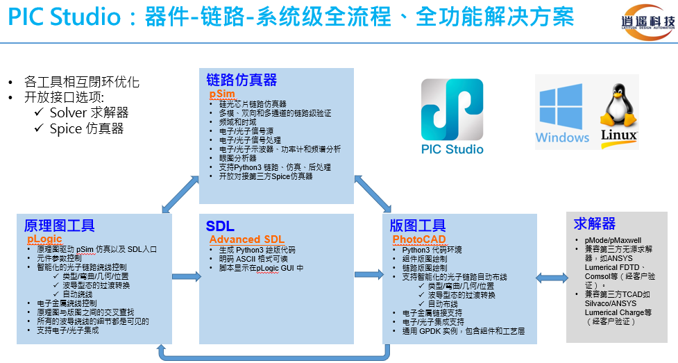 深圳逍遙科技有限公司作為全球“特色工藝”半導(dǎo)體芯片設(shè)計自動化EDA全流程解決方案的先行者之一,專注于EDA全流程解決方案的基礎(chǔ)研發(fā)和科技創(chuàng)新,致力于為行業(yè)提供自主可控、穩(wěn)定供應(yīng)、國際一流的硅基光電子與化合物光電子芯片的設(shè)計、仿真、驗證和PDK技術(shù)服務(wù)。逍遙科技的解決方案廣泛服務(wù)于光通訊芯片、光量子運算芯片、微納光子器件等領(lǐng)域的頭部客戶,近年來,憑借其領(lǐng)先的技術(shù)、優(yōu)質(zhì)的技術(shù)服務(wù)以及芯片設(shè)計行業(yè)應(yīng)用經(jīng)驗,獲得了客戶的一致好評。