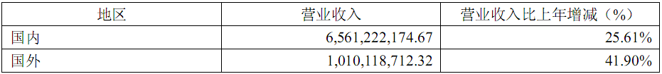 分主營業(yè)務(wù)地區(qū)情況來看,上半年國內(nèi)營收65.6億,同比增長25.61%;國外業(yè)績增長速度令人矚目,實(shí)現(xiàn)營收10.1億,同比增長41.90%,增長速度遠(yuǎn)高于國內(nèi)增長。