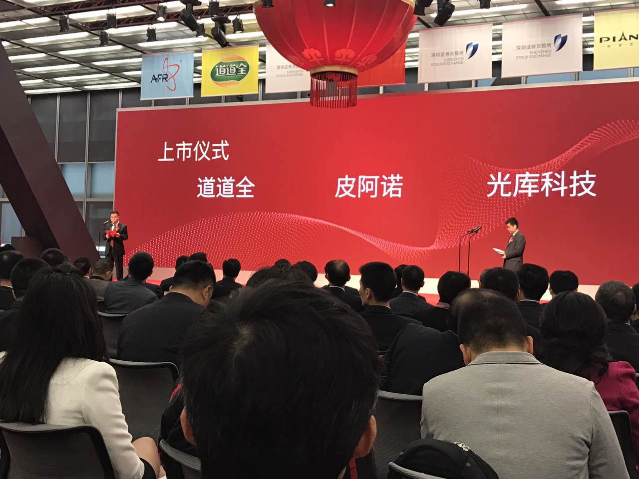 ICCSZ訊 3月10日上午9點(diǎn)30分,在深交所8樓儀式大廳,珠海光庫科技股份有限公司進(jìn)行了隆重的上市敲鐘儀式,鐘聲的響起宣布光庫科技正式公開面向市場(chǎng),股票代碼為“300620”。今天與光庫科技一同上市敲鐘的還有道道全,皮阿諾兩家企業(yè)。訊石石總有幸參加了這場(chǎng)盛會(huì),并見證了光庫科技這一歷史性的時(shí)刻。在此,訊石由衷的祝愿光庫科技永攀新高,越走越好。