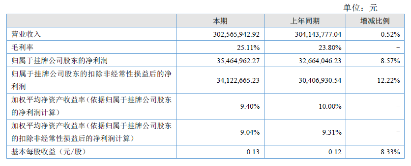 據(jù)了解,報告期內(nèi)公司實現(xiàn)營業(yè)收入302,565,942.92 元,與上年同期相比下降0.52%,其中手機(jī)金屬外觀件訂單增加導(dǎo)致無線類產(chǎn)品收入同比增長89.98%,但運營商訂單的減少導(dǎo)致有線類產(chǎn)品收入同比下降36.88%;營業(yè)成本本期金額226,598,989.46 元,同比減少2.22%,本期綜合毛利率25.11%,同比增加1.31個百分點,主要是無線類產(chǎn)品產(chǎn)量擴(kuò)大和產(chǎn)品良率提高,規(guī)模效應(yīng)逐漸顯現(xiàn)導(dǎo)致單位產(chǎn)品成本降低。