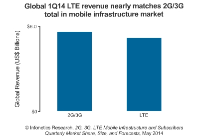 ICCSZ訊 近日,市場調(diào)研公司Infonetics發(fā)布其最新的2014年一季度關(guān)于2G/3G和LTE市場報(bào)告。