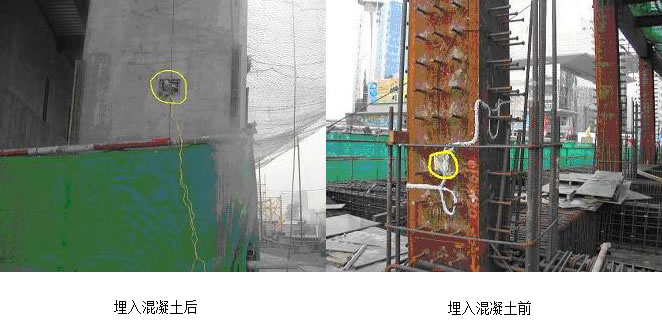 2003年9月,上海紫珊光電技術有限公司自主研發(fā)的光纖光柵傳感應變計埋設于混凝土中對北京中關村某標志性建筑進行靜態(tài)應變測量。上海紫珊光電技術有限公司自主研發(fā)的光線光柵應變計具有精度高(一般為1με,如果是小量程的應變測量,可以達到0.5με)、可靠性高、安裝方式多樣、使用方便等優(yōu)點,成功應用于北京中關村某標志性建筑中,布設在鋼梁上并埋設在混凝土中對支柱鋼梁進行施工過程監(jiān)測。