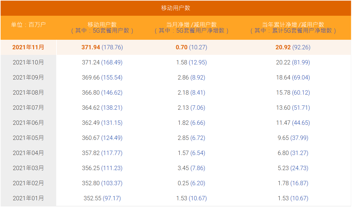 摘要:中國電信公布了2021年11月主要運(yùn)營數(shù)據(jù)。
