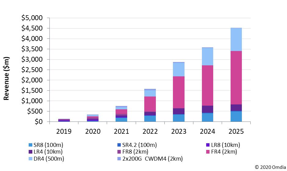 ·400G數(shù)據(jù)通信部署已經(jīng)延遲,但將從2020年下半年開始加速,到2021年將緩慢增長,到2022年將加速增長;