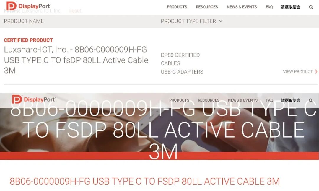 ICC訊 1 月 14 日,立訊精密研發(fā)的的USB TYPE C TO fsDP 80LL Active Cable 3M產(chǎn)品,成功延續(xù)其技術(shù)領(lǐng)先優(yōu)勢,穩(wěn)居全球首批通過 VESA 官方認(rèn)證的主動(dòng)式 C TO DP80LL 線材名單。此次突破,既體現(xiàn)了立訊在DisplayPort 2.1上的深厚積累,也標(biāo)志著我們在高頻傳輸技術(shù)領(lǐng)域構(gòu)建起堅(jiān)實(shí)的競爭壁壘。