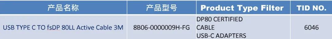 USB-C to fsDP 80LL Active Cable 3m — 技術(shù)規(guī)格