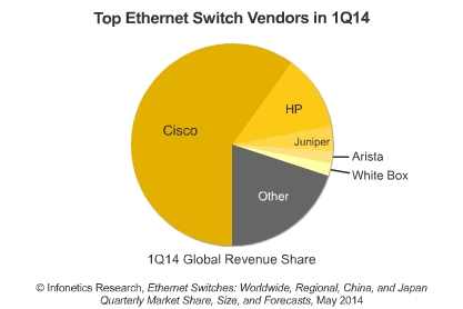 ICCSZ訊 2014年6月4日,市場調(diào)研公司Infonetics發(fā)布其2014年一季度關(guān)于以太網(wǎng)交換機市場報告。