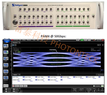 2017年11月,富泰科技與上海乘訊科技正式簽訂代理協(xié)議,雙方將合作在200G/400G光器件生產研發(fā)上為客戶提供領先的測試技術解決方案。據了解,上海乘訊科技在國內正式推出第一臺PAM4誤碼儀,可同時支持4通道62Gb/s PAM4和8通道30Gb/s NRZ誤碼測試,可用于目前200G/400G TOSA/ROSA器件的測試,支持32Gbaud~62GBaud速率的PAM4信號和9.953Gbaud~30GBaud NRZ信號測試,每個PAM4和NRZ通道都有獨立時鐘信號輸出。同時,乘訊誤碼儀內置高質量信號源,并且支持LabView、C#等可編程語言。