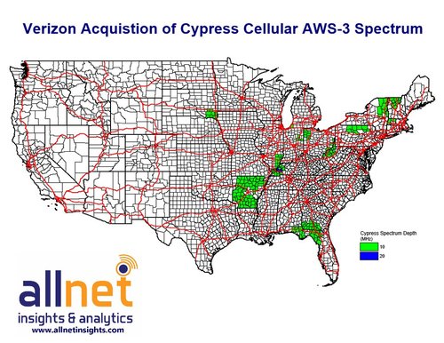 Goemmer表示,通過收購佛羅里達(dá)州的Cypress Cellular,Verizon將能夠?qū)⑵?A href="http://m.partyval.com/site/CN/Search.aspx?page=1&keywords=AWS-3&column_id=ALL&station=%E5%85%A8%E9%83%A8" target="_blank">AWS-3頻段中的LTE信道的頻率從10MHz增加到15MHz。 Verizon最近與近六家實(shí)體達(dá)成了交易,以增加其28GHz頻譜的最大優(yōu)勢,這些頻譜許可擁有者為Eastern Illini Electric Cooperative,Wilcom,Highland Holdings,Technautics和Gateway Telecom。
