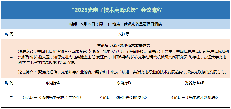 會(huì)議名稱:2023光電子技術(shù)高峰論壇
