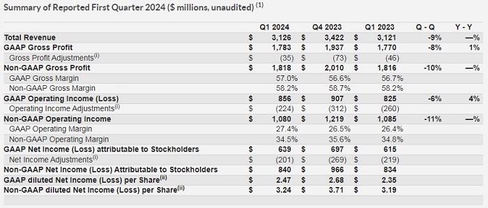- GAAP每股攤薄收益2.47美元,上個(gè)季度2.68美元,去年同期2.35美元。非GAAP每股攤薄收益3.24美元,上個(gè)季度3.71美元,去年同期3.19美元。