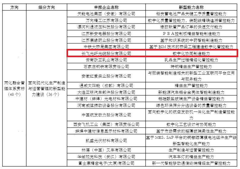 ICC訊 為深入貫徹落實(shí)《國(guó)務(wù)院關(guān)于深化制造業(yè)與互聯(lián)網(wǎng)融合發(fā)展的指導(dǎo)意見》、《國(guó)務(wù)院關(guān)于深化“互聯(lián)網(wǎng)+先進(jìn)制造業(yè)”發(fā)展工業(yè)互聯(lián)網(wǎng)的指導(dǎo)意見》,根據(jù)《工業(yè)和信息化部辦公廳關(guān)于組織開展2020年制造業(yè)與互聯(lián)網(wǎng)融合發(fā)展試點(diǎn)示范項(xiàng)目申報(bào)工作的通知》(工信廳信發(fā)函〔2020〕240號(hào)),經(jīng)企業(yè)申報(bào)、地方推薦、專家評(píng)審等環(huán)節(jié),形成了2020年制造業(yè)與互聯(lián)網(wǎng)融合發(fā)展試點(diǎn)示范名單。長(zhǎng)飛光纖光纜股份有限公司(以下簡(jiǎn)稱“長(zhǎng)飛公司”,股票代碼:601869.SH、06869.HK)以“數(shù)字化協(xié)同制造能力”入選工業(yè)和信息化部2020年制造業(yè)與互聯(lián)網(wǎng)融合發(fā)展試點(diǎn)示范名單,是長(zhǎng)飛公司智能制造與工業(yè)互聯(lián)網(wǎng)融合發(fā)展的新里程碑。