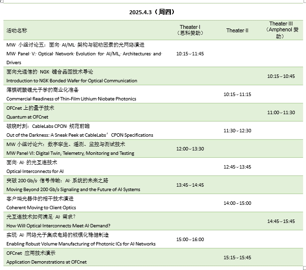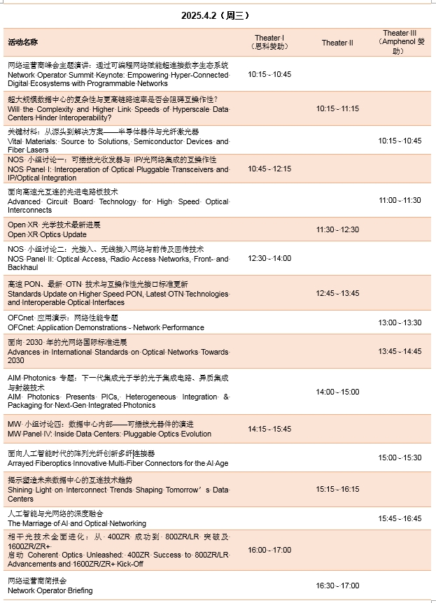 高效連接方案:4月1日“優(yōu)化互聯(lián)技術(shù)”與4月2日“陣列光纖創(chuàng)新多纖連接器(AI時代)”,指向高密度光纖連接器的市場增長。